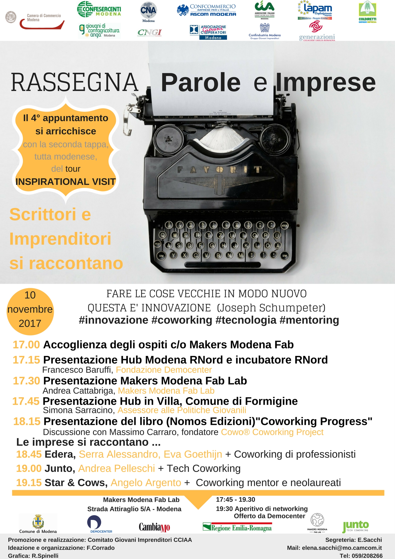 L'ultimo appuntamento 2017 con la rassegna si sposta presso il Fab Lab, perché si colloca a conclusione della seconda tappa dell'Insipirational Visit, tutta incentrata sull'incubatore Erre Nord e sul coworking.