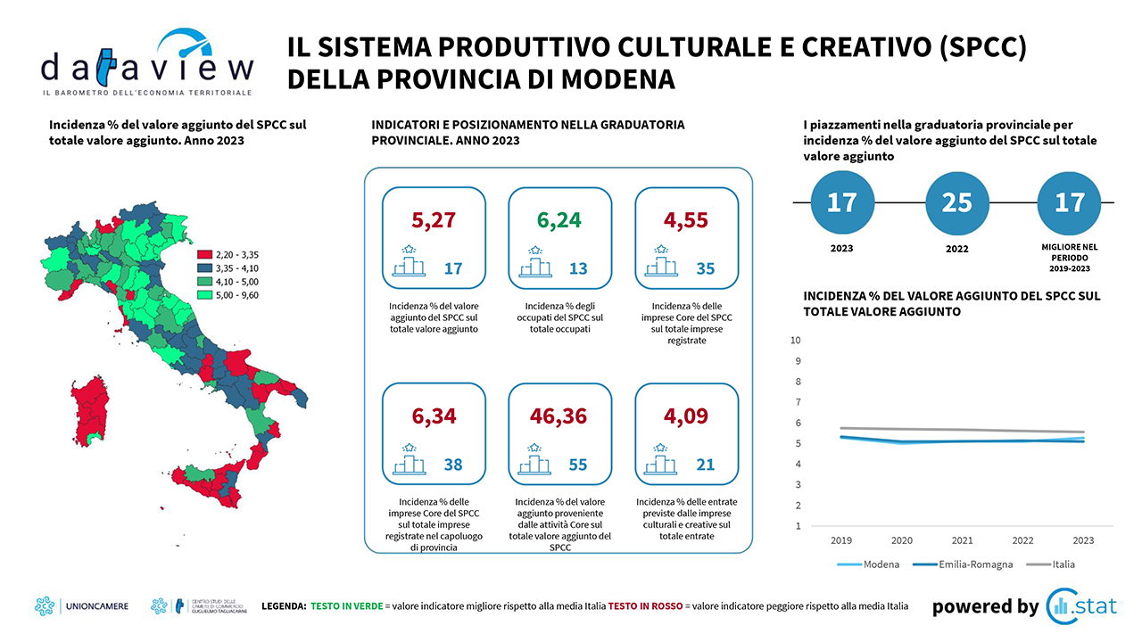 Dataview - Il sistema produttivo culturale e creativo (SPCC)https://www.mo.camcom.it/immagini/barometro-spcc/viewhttps://www.mo.camcom.it/immagini/barometro-spcc/@@download/image/0036_202409.png