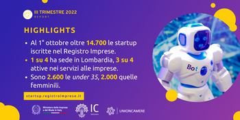 Nel terzo trimestre 2022 si conferma il trend, già registrato durante tutto l'anno, di crescita delle startup innovative sul territorio italiano. Per la prima volta, infatti si attestano a 14.708 unità, il numero più alto di sempre.