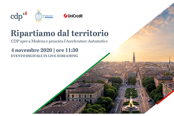 Cassa Depositi e Prestiti apre un punto informativo presso la sede della Camera di Commercio di Modena - il primo in Emilia-Romagna - dove soggetti pubblici e privati potranno incontrare i referenti CDP e ricevere un supporto integrato, tecnico e finanziario, su progetti di sviluppo e rilancio economico del territorio.