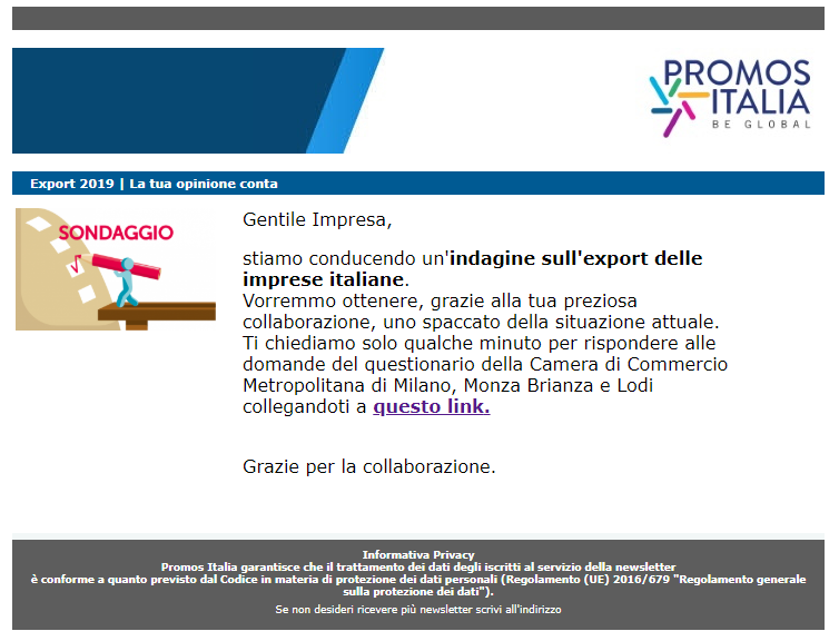 Promos Italia sta effettuando un sondaggio sull'export delle imprese italiane