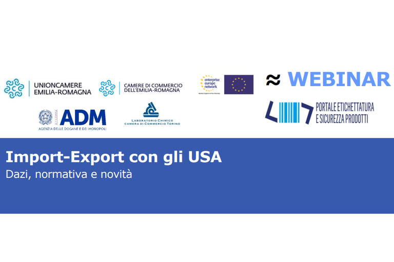 Unioncamere e le Camere di Commercio Emilia-Romagna, nell'ambito delle attività della rete Enterprise Europe Network, in collaborazione lo Sportello Etichettatura e Sicurezza Prodotti organizzano un webinar dedicato all'import export con gli USA.